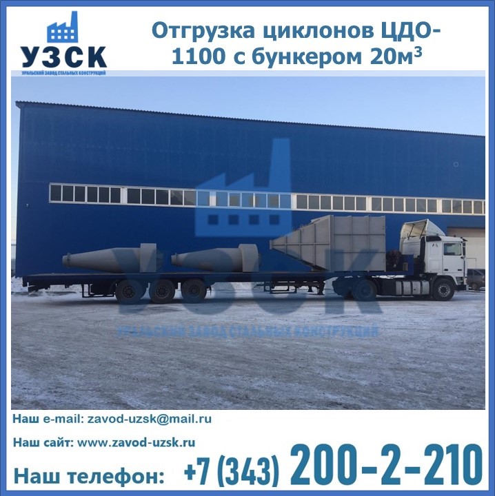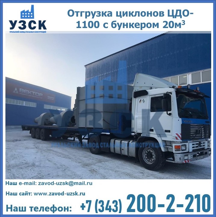 Циклоны ЦДО-1100 с бункером на 20 кубов были отгружены в декабре 2018 года в г. Новосибирск Октябрьский.