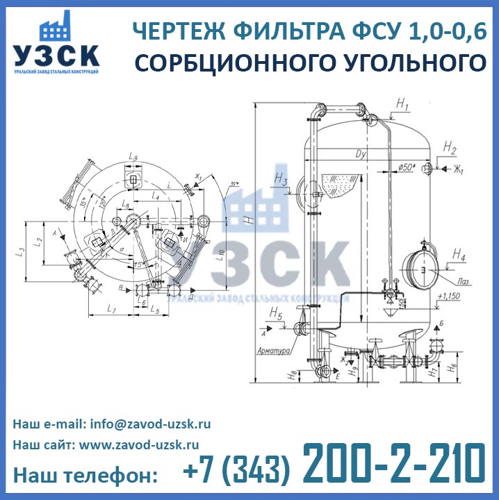 Наш завод (Уральский завод стальных конструкций) является производителем угольных фильтров, сам осуществляет изготовление и реализацию выпускаемой продукции. Приобретая фильтры ФСУ-1.0-0.6 в Октябрьском от производителя, Вы приобретаете оборудование без наценок всевозможных посредников, а также значительно экономите свое время. Фильтры ФСУ1.0-0.6 завода УЗСК – это гарантия качества, кратчайшие сроки изготовления и цена, которая Вам понравится.