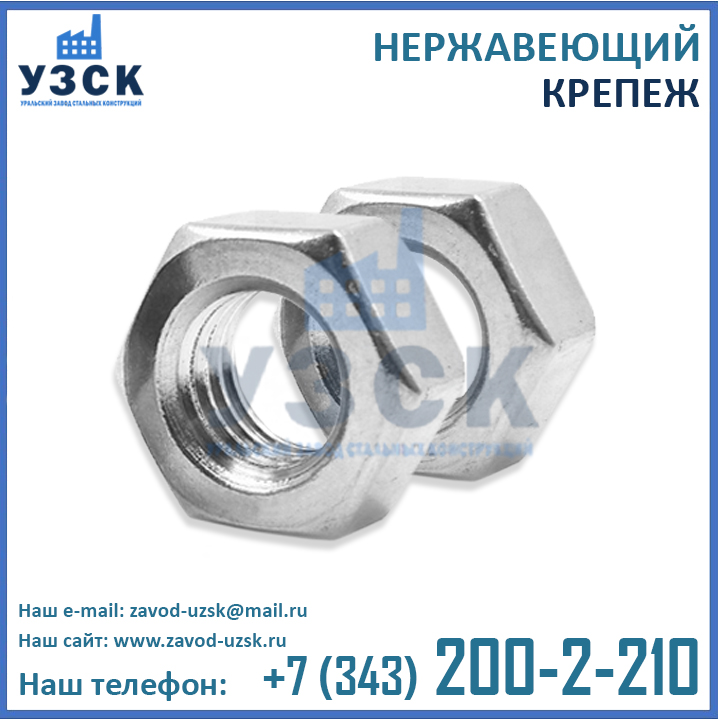 Уральский Завод Стальных Конструкций – это непосредственный производитель нержавеющего крепежа, выпускающий продукцию высокого качества, подтвержденную сертификатами ИСО, декларациями соответствия, и прочими необходимыми разрешительными документами. В штате завода УЗСК только высококвалифицированные сотрудники, имеющие профильное образование. Сварочные работы осуществляют специалисты, аттестованные по технологии НАКС. А инженеры конструкторского отдела нашего Завода помогут Вам в выборе подходящих именно Вам метизов из нержавеющей стали, подготовят необходимые чертежи и схемы, а также разработают конструкторскую документацию для Вашего заказа.
