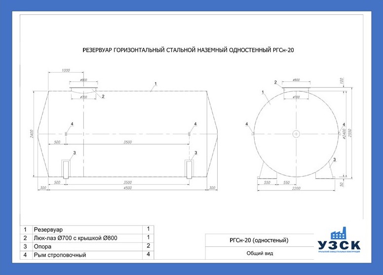 РГСн-20: горизонтальный резервуар одностенный наземного расположения;